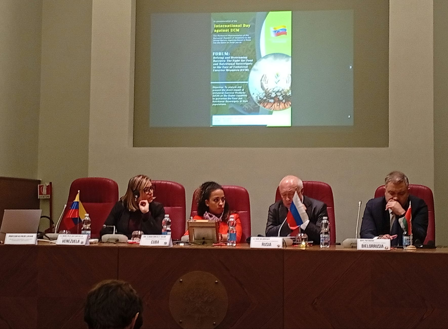 ROMA, Italia – Nel cuore della Capitale, presso la Sala Pio XI del Palazzo San Calisto, il 4 dicembre 2025 – Giornata Internazionale contro le Misure Coercitive Unilaterali (MCU) – si è consumato un fondamentale atto di resistenza diplomatica. Il Forum “Sfidare e Superare gli Ostacoli: La Lotta per la Sovranità Alimentare e Nutrizionale di Fronte alle MCU”, organizzato dalla Missione Permanente della Repubblica Bolivariana del Venezuela, ha trasformato la denuncia in un appello politico globale, rivelando le sanzioni non come strumenti di politica estera, ma come strumenti di guerra economica e violazione dei diritti umani.