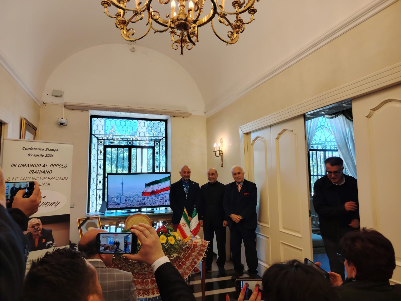 Roma, 9 Aprile 2026 – Alle ore 11:00, in una mattinata che ha segnato un punto di svolta nel dialogo interculturale tra le sponde del Mediterraneo e il cuore dell’antica Persia, presso la sede dell’Ambasciata della Repubblica Islamica dell’Iran in via Nomentana 361, si è consumato un evento di portata storica e intellettuale senza precedenti. Sotto l’egida di **S.E. l’Ambasciatore Mohammad Reza Sabouri** e del Direttore dell’Istituto Culturale, il Dott. Seyed Majid Emami, è stata presentata l’opera lirico-musicale “Iran Simphony”, composta dal Maestro Antonio Pappalardo. L’iniziativa ha visto la partecipazione di una folta schiera di numerosi giornalisti delle principali testate, autorità diplomatiche di rango internazionale e autorevoli rappresentanti istituzionali, tutti riuniti per celebrare un legame culturale indissolubile che sfida le logiche del conflitto attraverso l’armonia di un’opera monumentale in quattro movimenti in Sol minore.