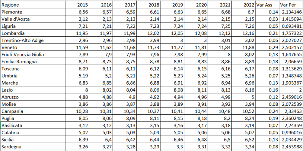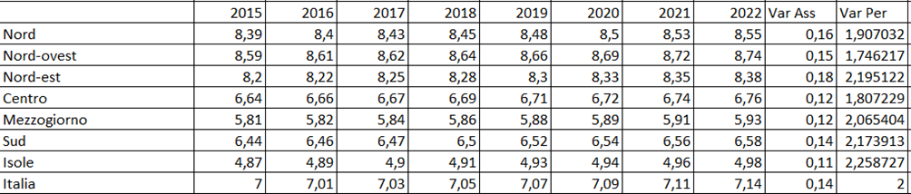 - Nord Italia presenta i valori più elevati, ma Sud e Isole mostrano incrementi percentuali spesso superiori.