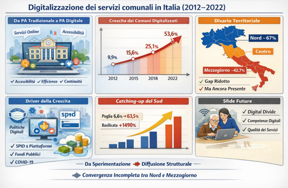 In definitiva, l’Italia ha compiuto progressi importanti nella digitalizzazione dei servizi comunali, ma il percorso non può dirsi concluso. Ridurre ulteriormente i divari territoriali, investire nelle competenze e migliorare la qualità dei servizi rappresentano le priorità per consolidare i risultati raggiunti e rendere la trasformazione digitale un reale fattore di equità ed efficienza.